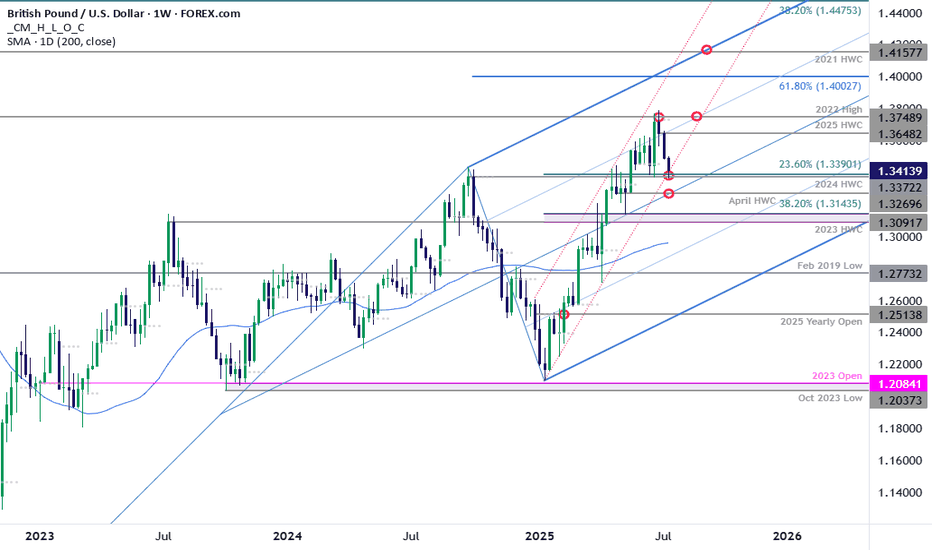 GBP/USD Plunges to Make-or-Break SupportSterling is poised to mark a third consecutive weekly decline after turning from resistance at multi-year highs. The decline takes price into critical support at the yearly trendline- this is a make-or-break level for the bulls.