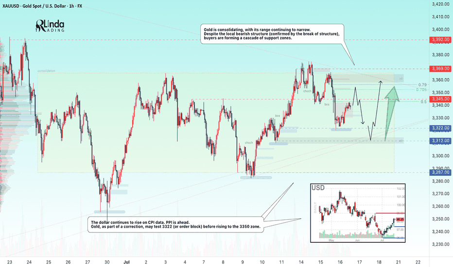 GOLD → Borders are shrinking. Consolidation continues...FX:XAUUSD is adjusting amid controversial CPI data and confirming the local bearish market structure. The PPI is ahead, and gold is consolidating, with its boundaries continuing to narrow...
