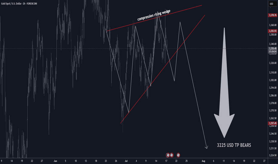 GOLD H2 Rising Wedge Expecting SellOFF TP BEARS 3225 USD📊 Gold Technical Outlook Update – H4 & 2H Chart