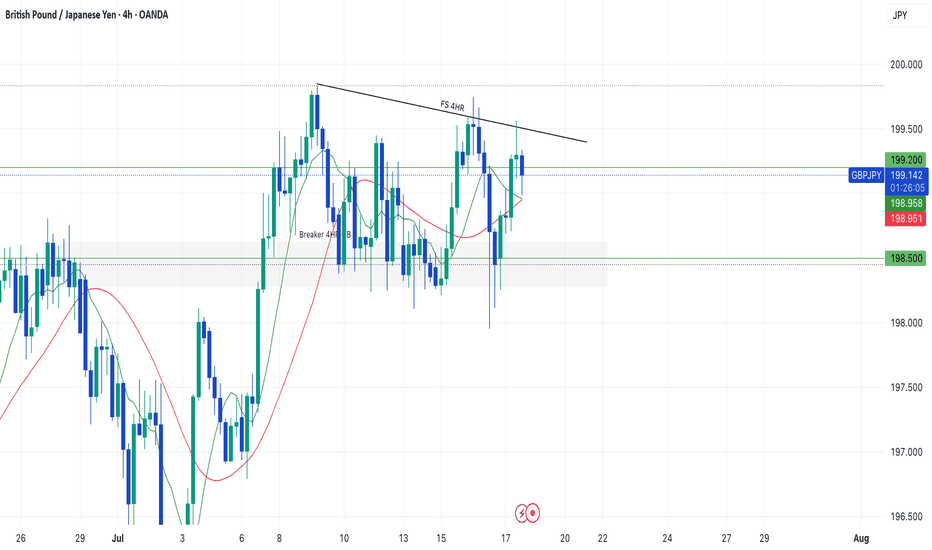 Right now, GJ is failing to swing higher at a major resistance at 199.200. Looking at the 4HR, yesterday July 16th, price wicked down to 198.000 retesting a previous 4HR CHOCH, then pulling back up to continue consolidation in between 198.000 and 199.200. However, on the 4HR price didn'