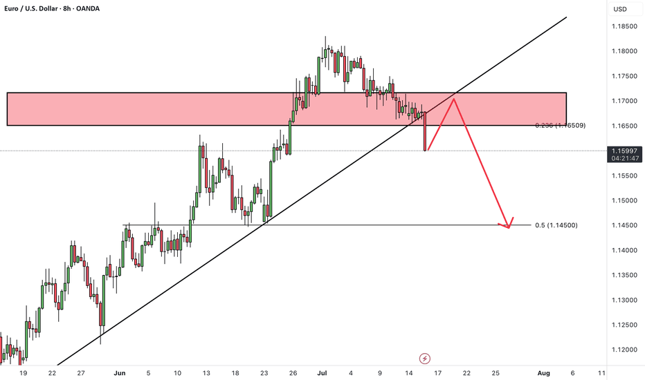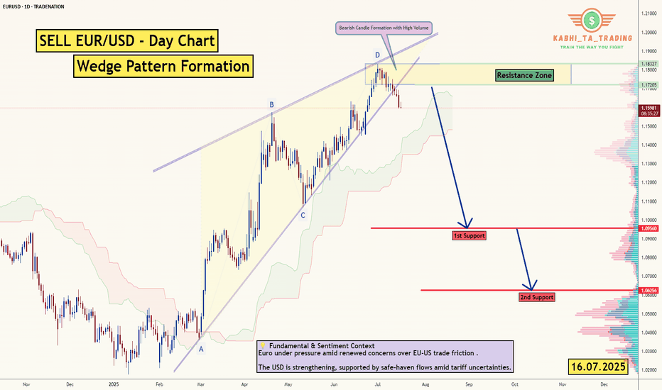 EUR/USD - Daily Chart (Wedge Breakout) (16.07.2025) The EUR/USD Pair on the D1 timeframe presents a Potential Selling Opportunity due to a recent Formation of a Wedge Pattern. This suggests a shift in momentum towards the downside in the coming Days.