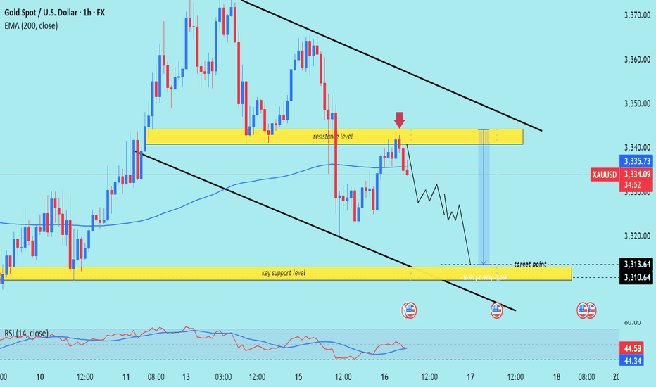 Technical analysis of XAU/USD (Gold vs USD) on the 1-hour timeframe. Here's a breakdown