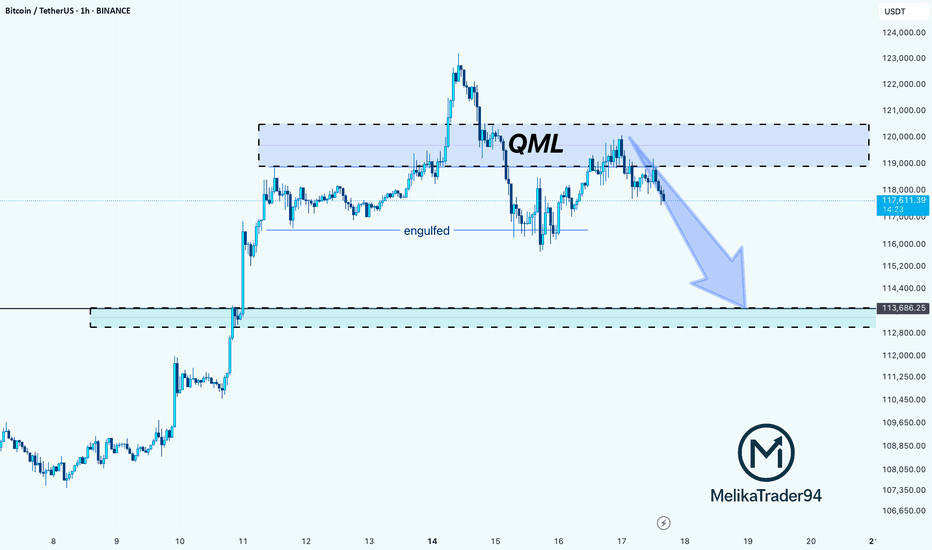 BTC Rejection from QML Zone: Towards on 113,600 SupportHello guys!