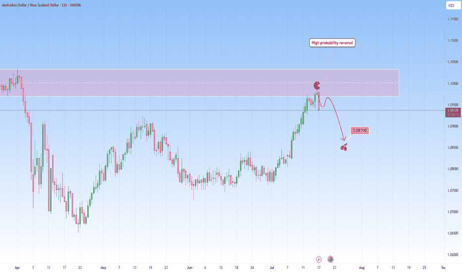 AUDNZD: Ongoing Reversal from ResistanceI am watching for a reversal on AUDNZD as marked on my chart, expecting a reversal with a downside target at around 1.08700.