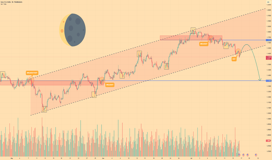 EURUSD has broken support level and its ascending trendline, indicating a possible shift in short-term market structure and growing bearish pressure.