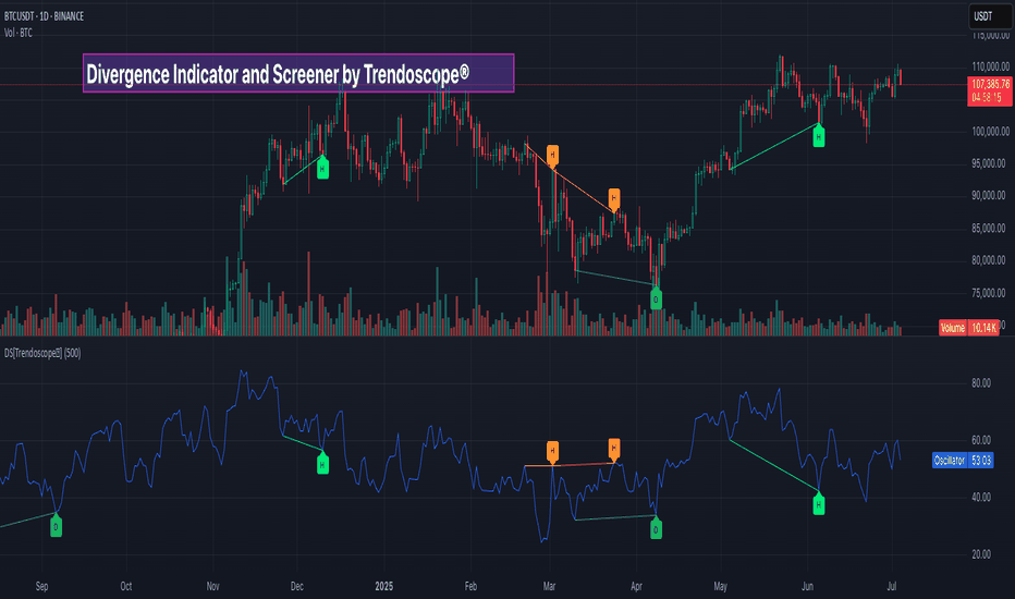 The Divergence Screener is a powerful TradingView indicator designed to detect and visualize bullish and bearish divergences, including hidden divergences, between price action and a user-selected oscillator. Built with flexibility in mind, it allows traders to customize the oscillator